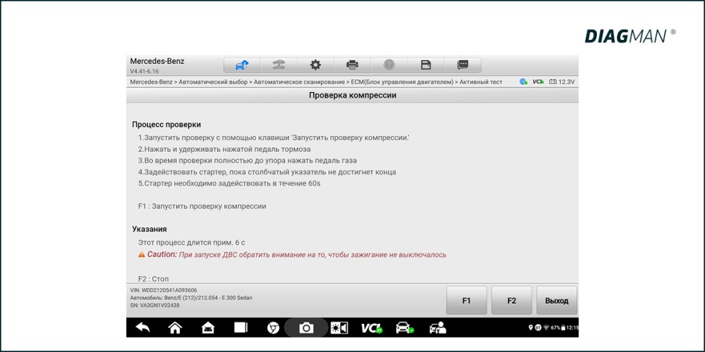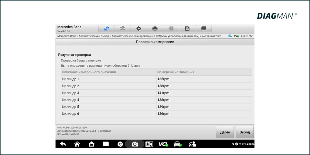 Инструмент: DIAGMAN CPT200D для получения абсолютных значений с точностью ±2 %